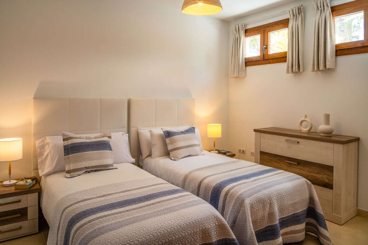 The property boasts four bedrooms and three bathrooms, offering comfortable and well-distributed living spaces ideal for families or those seeking a second home on the island. Outside, it features expansive terraces, a relaxation area, a private heated pool, and a jacuzzi, creating an ideal setting to enjoy the island's privileged climate year-round.