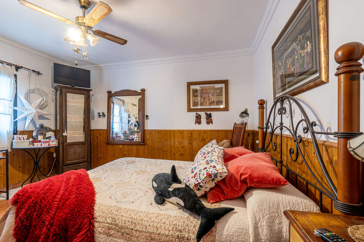 La vivienda cuenta con cuatro habitaciones, una de ellas habilitada como vestidor, y otra de menor tamaño que dispone de un altillo de madera, ideal como zona auxiliar de almacenamiento.