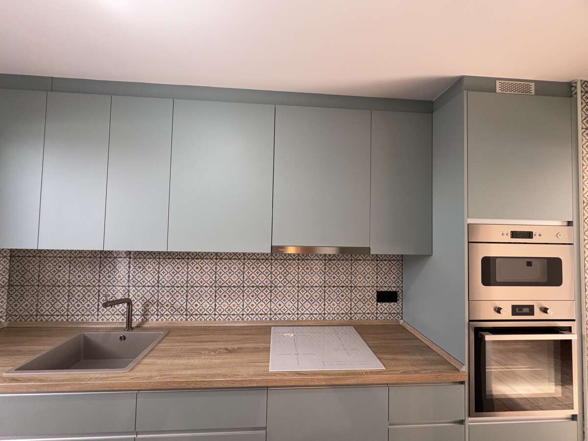 The spacious living-dining room is divided into two separate areas, ideal for creating a relaxation area and a separate dining or entertaining area. Both connect directly to the terrace and garden through glass doors with aluminum shutters, providing plenty of natural light.