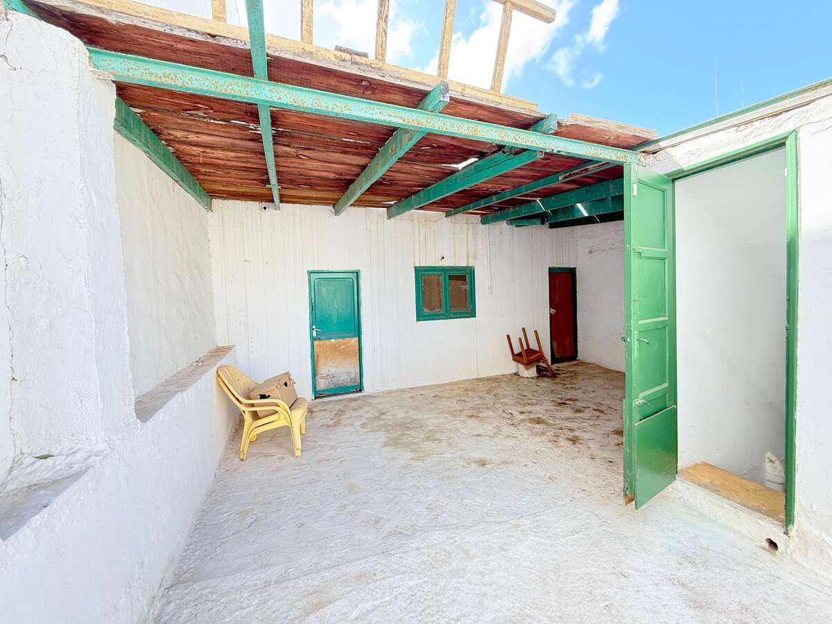 House with garage, in need of renovation, in the center of Arrecife. The ground floor comprises three bedrooms, a bathroom, a storage room, a hallway, a separate kitchen, a dining room, a living room, a storeroom, an entrance hall, and a garage.