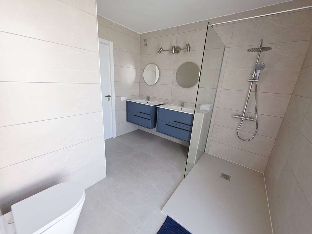 The upper floor consists of two spacious bedrooms, one with a dressing room, a very large bathroom, patio and a storage room.