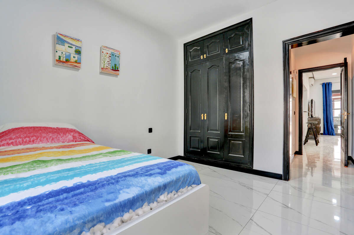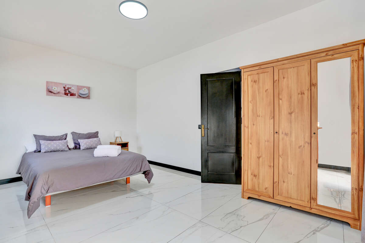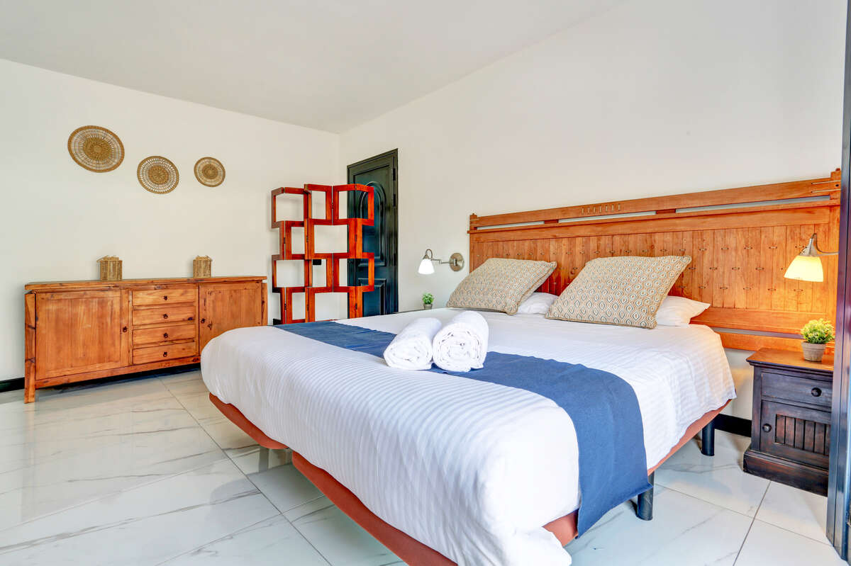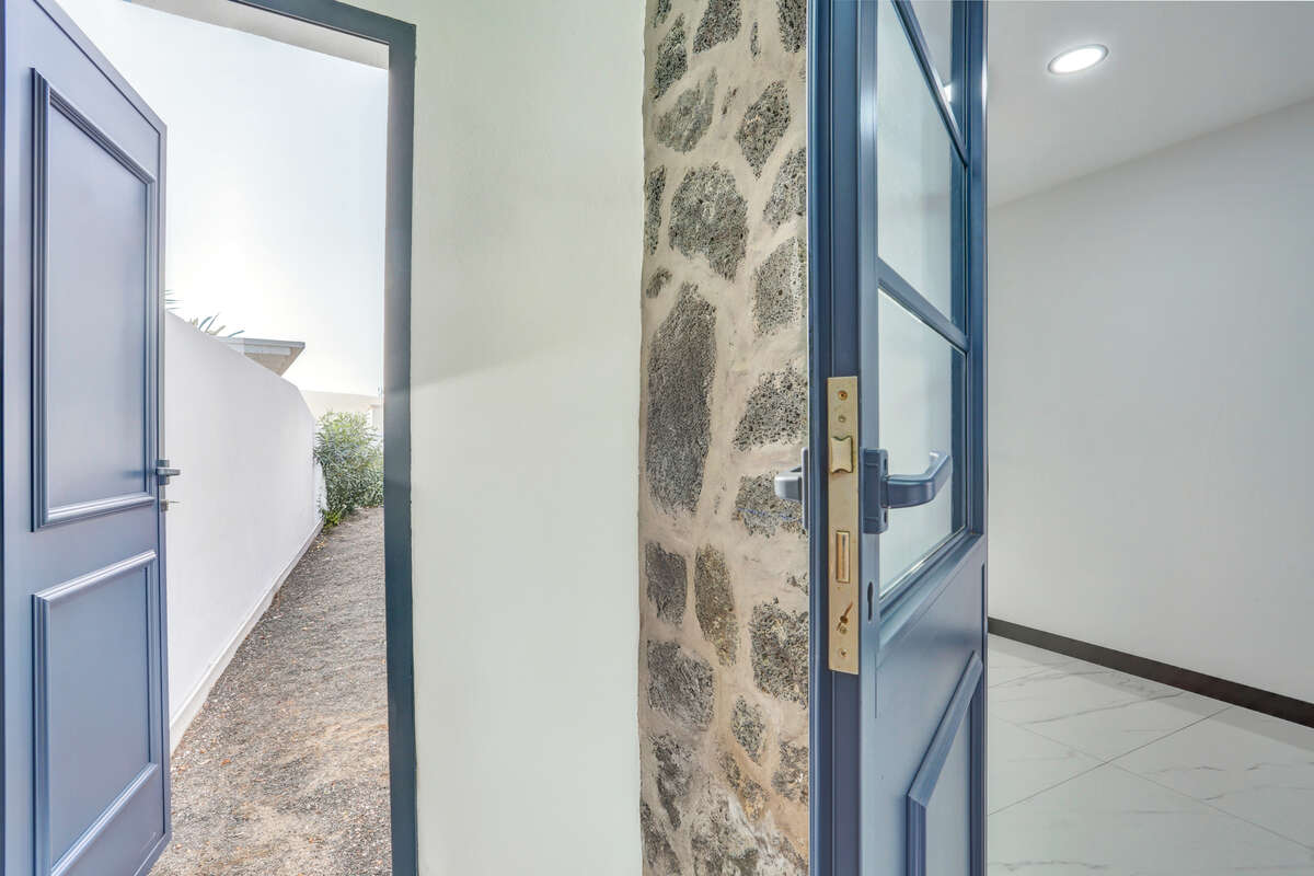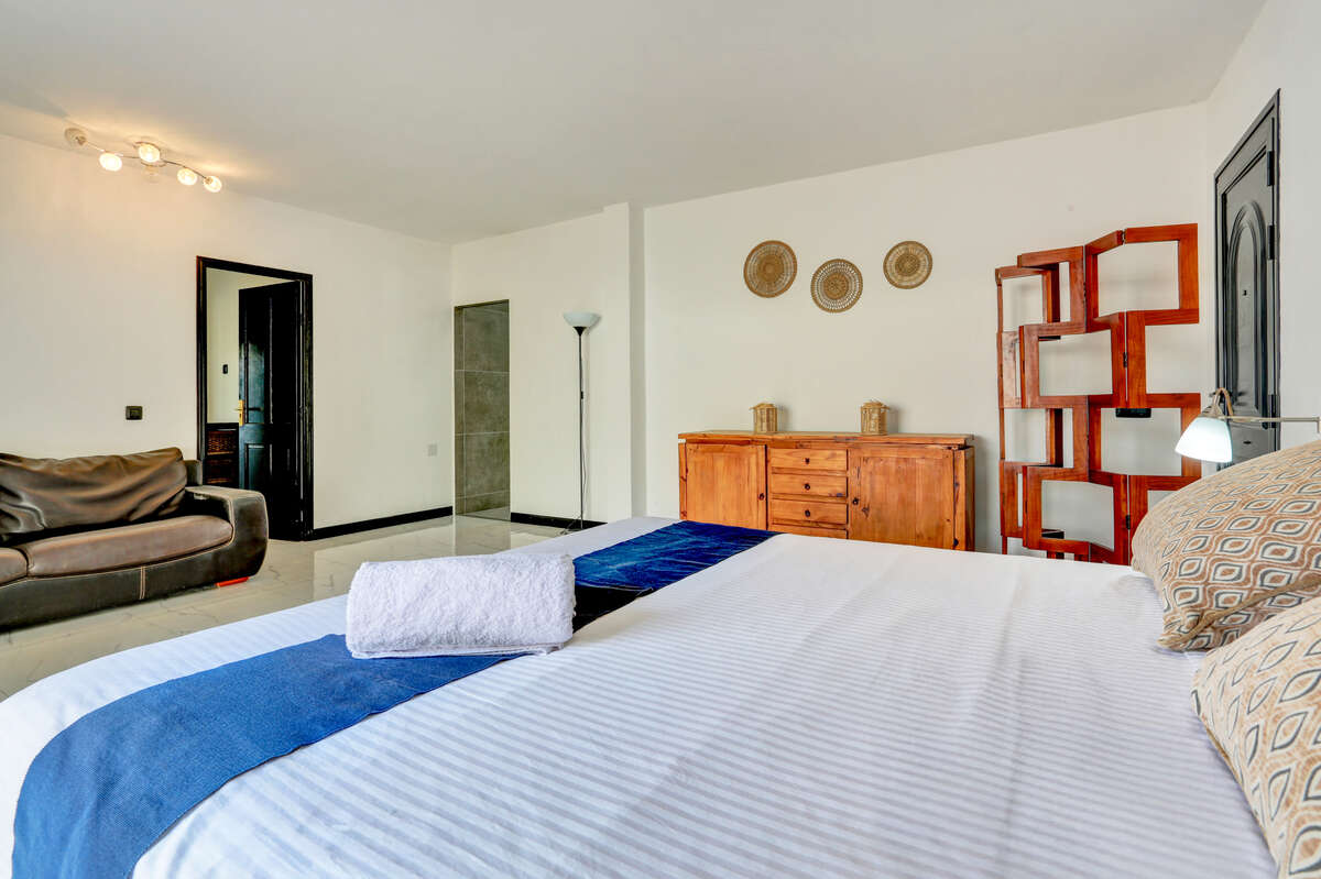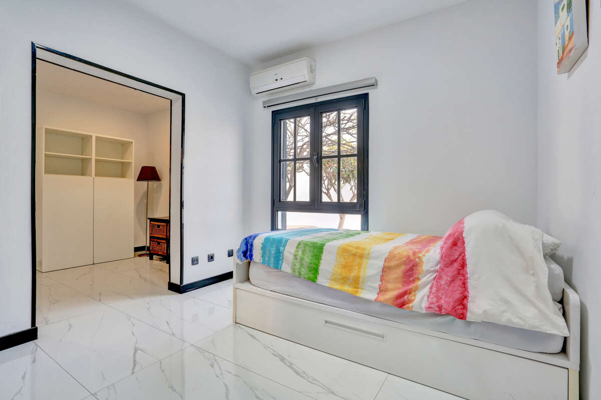 The villa has three bedrooms, two of which are particularly spacious and offer direct access to the outdoor terrace, allowing you to wake up each morning to the warm natural light of Lanzarote and enjoy a private exit onto the veranda or the pool area.