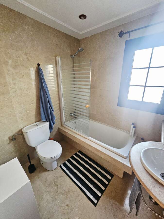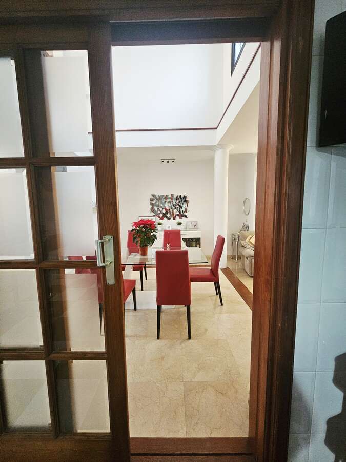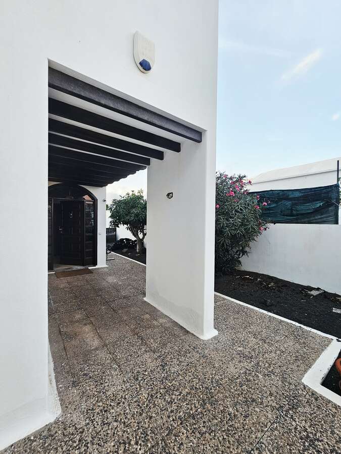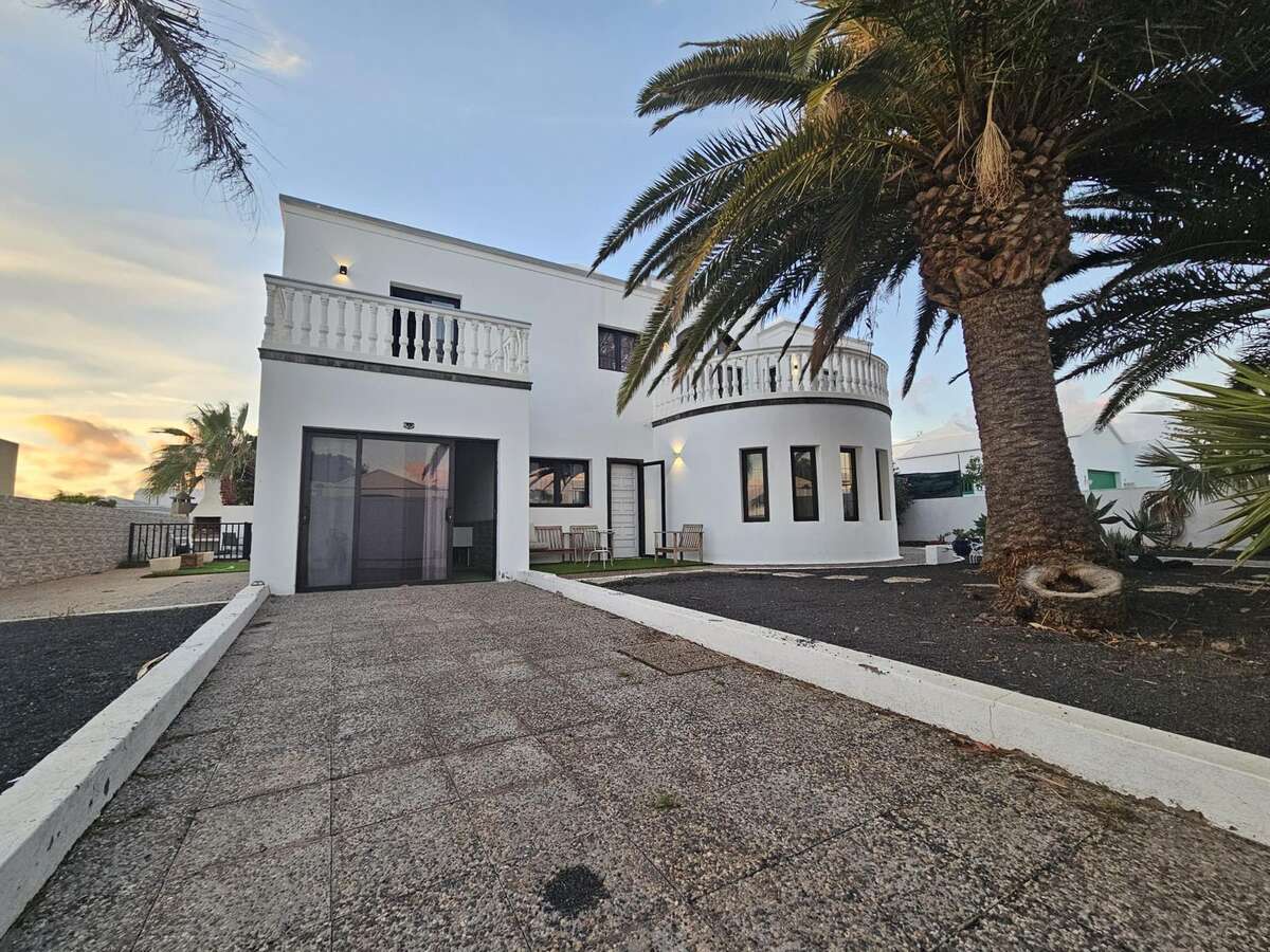 Spectacular detached villa for short-term rental in Tahiche Bajo. This two-story villa features a private pool and a large 500 m² plot. It offers five bedrooms (four doubles and one single), three bathrooms, and a large, fully equipped independent kitchen. The living/dining room and terrace, with views, are accessible from one of the upstairs bedrooms.