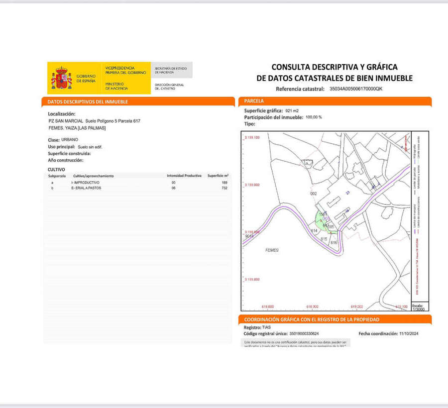 Auf dem Grundstück befindet sich ein eingetragenes, sanierungsbedürftiges Haus mit 120 m², das wiederaufgebaut oder renoviert werden kann. Das Grundstück ist als ländliches Siedlungsgebiet (suelo rústico de asentamiento rural) klassifiziert, doch der Bereich um das Haus ist urban, sodass Sie Ihr Traumhaus in außergewöhnlicher Lage errichten können.