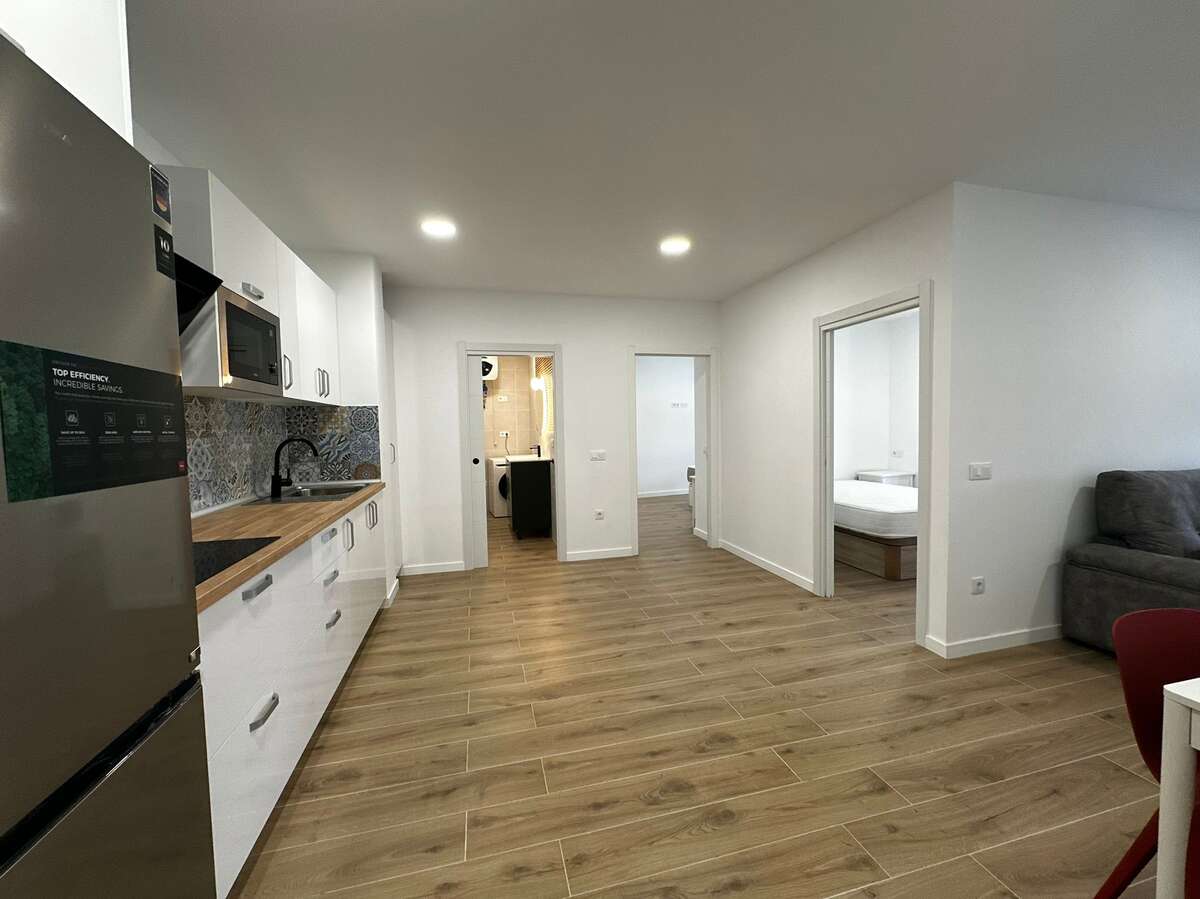 - Cocina integrada y equipada con electrodomésticos nuevos a estrenar (Campana extractora, frigorífico, microondas y lavadora)